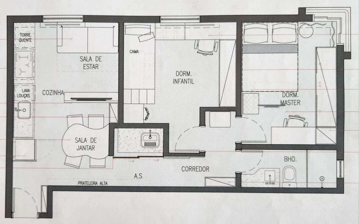 Apartamento com 52m² privativos, dois dormitórios, cozinha americana, área de serviço individualizada, dormitórios principal com varanda de apoio e uma vaga de garagem determinada coberta.